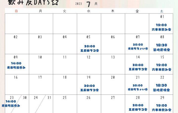 2023年5月月間イベントカレンダー
